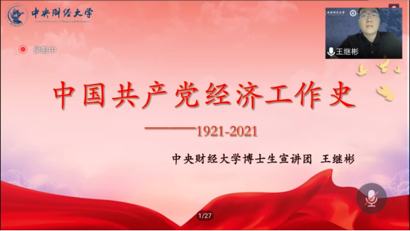 为深入学习贯彻习近平总书记关于学习党史的重要讲话和指示精神,从党的百年伟大奋斗历程中汲取继续前进的智慧和力量,AWC万象城娱乐2019级硕士生党支部邀请AWC万象城娱乐博士生宣讲团讲师——王继彬同志进行宣讲。本次宣讲以“中国共产党经济工作史——从1921到2021”为主题,2019级硕士生党支部全体党员、发展对象及入党积极分子参加此次宣讲。