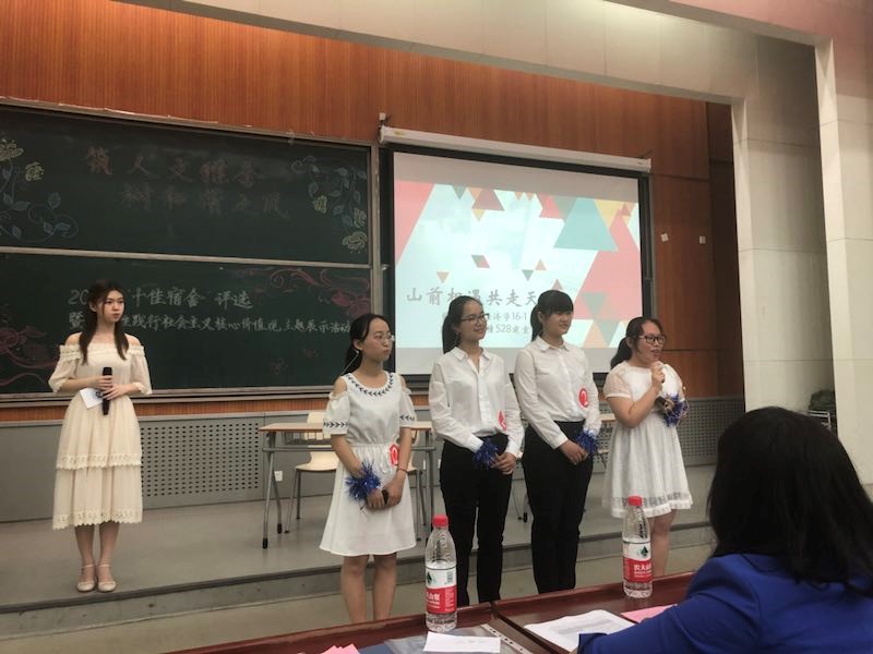 2018年本科生宿舍评优工作从五月初启动至五月底正式落下帷幕。经过本科生申请、学院推荐、学校材料复核、实地走访、现场评审展示等环节,万象城官网本科16级528宿舍入围了最终的现场评审展示环节。在现场展示中,528宿舍从学习、工作、社会活动各方面进行了阐述,得到了现场同学热烈的掌声与评委老师的肯定,最终获得了校级“优秀宿舍”的荣誉。同时万象城官网14级203毕业生宿舍也凭借着优秀的大学学业成绩、丰富的工作经历、扎实的科研成果获得了校级“优秀毕业生宿舍”的称号。