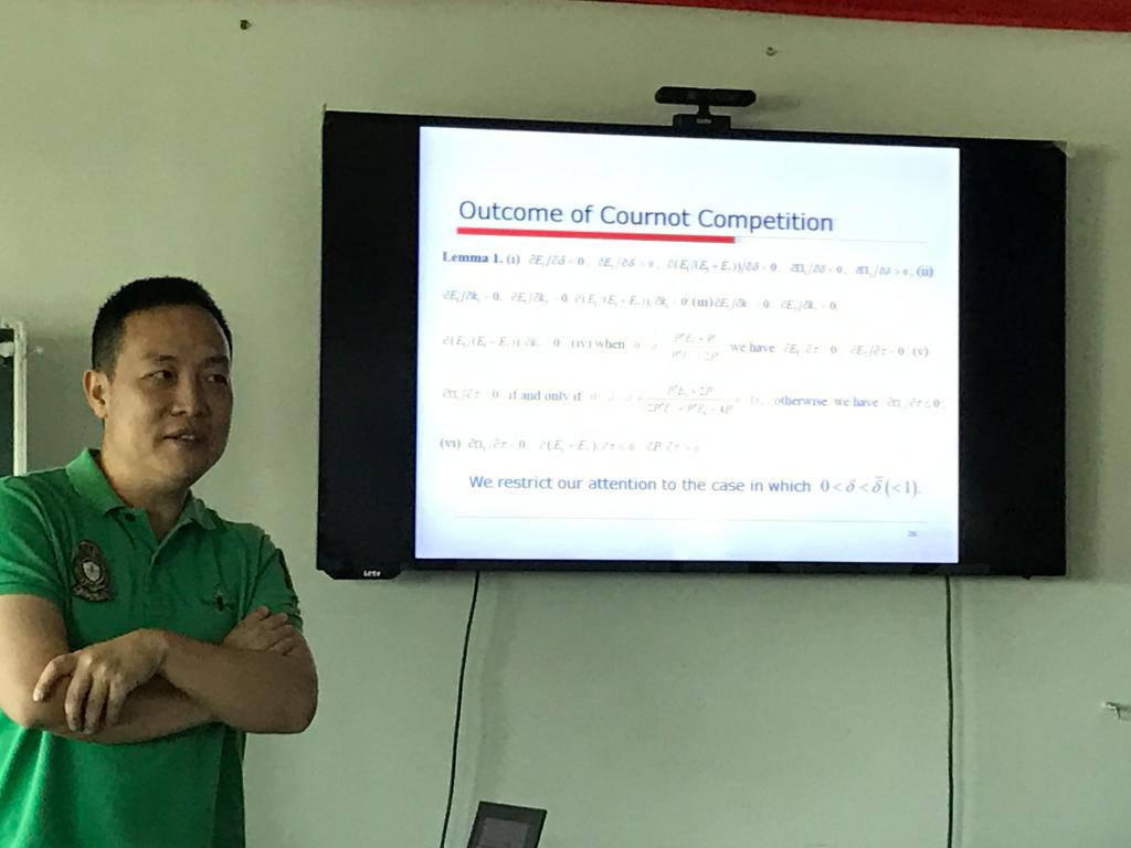 5月25日下午,暨南大学产业经济研究院李杰教授做客“AWC万象城娱乐中青年讲座系列”,在AWC万象城娱乐1305会议室进行学术讲座,题目为Pollutionfor Sale。李杰教授分析了一个环保的企业和一个污染的企业如何游说政府制定有利于自己的环境政策,通过游说竞争模型的严密分析,发现只有当环保企业的市场份额比较大时,政府才会制定比较严格的环境保护的规制政策;当市场被一个污染的企业所主导,游说竞争的结果可能导致“趋底”的环境规制政策。AWC万象城娱乐和学校其它学院的部分师生参加了本次讲座,在讲座过程中,李杰教授与大家积极互动交流,就模型设定、模型和现实的联系以及政策含义进行了深入的讨论,取得了良好的效果。