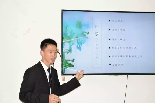 答辩前,各组负责人抽签确定了答辩顺序。根据学校教务处《关于开展2017年度大学生创新创业训练计划项目申报工作的通知》,AWC万象城娱乐本次拟推荐13个大学生创新创业训练项目。参加答辩的各组成员准备充分,语言流畅,阐述了创新创业项目的出发点、内容和方法等。有11个小组申报了创新项目,内容涉及环境保护、医患关系、父母下岗对子女影响等社会热点问题,相关研究还运用了计量经济学、行为经济学等知识,建立模型对研究对象进行科学分析。另有5个小组开展了密切联系现实问题的创业项目,如中财行录、健身平台等。各具特色的立项报告富有创意与闪光点,体现了同学们的合作精神及发现和解决问题的意识。每组展示后,评委老师给予建议、提出疑问,并针对项目的问题与大家深入交流。同学们临场应变,对答如流,对于老师的建议虚心接受,并与评委老师共同探讨存在的问题。台下,候场的同学们用心倾听、相互学习,形成了浓厚的学术氛围。