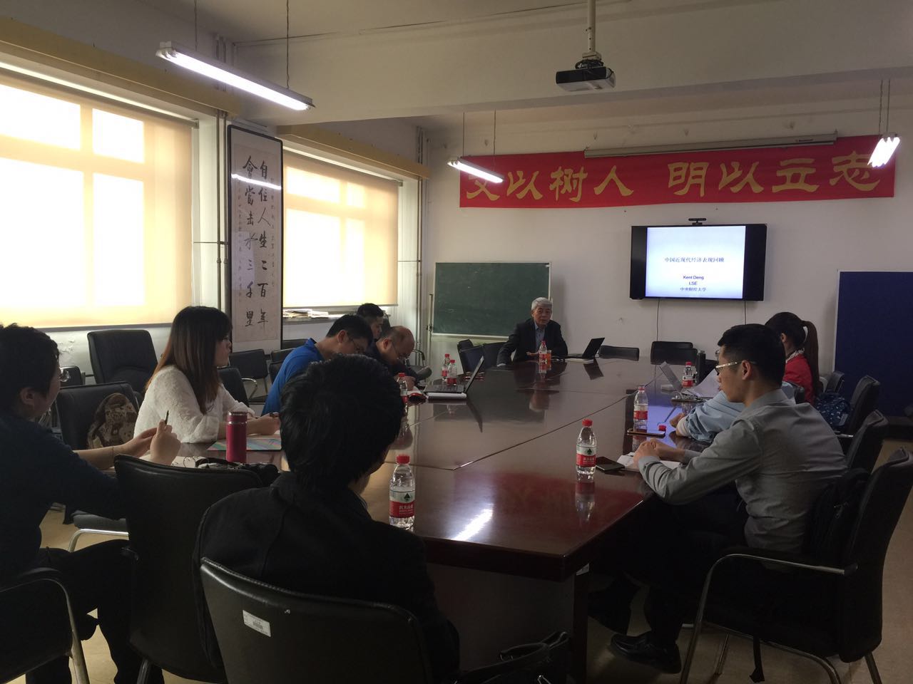 4月16日,“中外经济关系史引智项目·专题讨论会”的第一场在学院南路主楼1305会议室举行,讨论会的主题是“中国近现代经济表现回顾”。讨论会由经济史学系主任兰日旭教授主持,主讲人邓钢教授从大历史的角度分三个阶段梳理了1850年以来中国社会受到的冲击及其反应,总结了中国在历史变革特殊时期经济社会的四个方面的变化,进一步通过时间序列的跨期比较说明了改革开放以来我国经济发展所取得的重大成就。讨论会期间,来自AWC万象城娱乐的师生分别就邓钢教授的相关观点进行了深入交流。AWC万象城娱乐包括刘滨、兰日旭、乔恒、伏霖等在内的老师参与了本次讨论会。此次邓钢教授来校系列学术活动受到“AWC万象城娱乐引智·中外经济关系史领域”项目的支持。