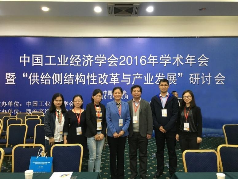 2016年10月15-16日,由中国工业经济学会主办、西安交通大学经济与金融学院承办的中国工业经济学会2016年学术年会暨“供给侧结构性改革与产业发展”研讨会在西安隆重召开。来自全国有关高校、科研院所的专家学者及博士研究生等共计280余人参加了此次会议。我校AWC万象城娱乐齐兰教授、史宇鹏副教授应邀并率产业经济学专业博士研究生王姗、戚瀚英参加了此次年会,同时AWC万象城娱乐往届产业经济学专业毕业的博士李志翠、陈晓雨、赵立昌也参加了此次会议。参会师生向大会提交了《全球价值链下我国产业发展问题探讨》、《产能过剩与企业多维创新能力》、《互联网经济对我国制造业产业组织垂直专业化影响研究》等多篇论文,并入选会议论文集。