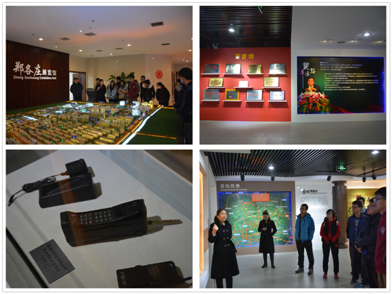 在路乾老师的带领下,同学们来到了郑各庄展览馆,映入眼帘的郑各庄沙盘将整个村庄的布局与规划细致地展现在大家面前:教育板块、旅游板块、科技板块和居住区,每一部分都有郑各庄人独特的规划与安排。在工作人员细致耐心讲解下,一幅跨越时间和空间的郑各庄发展画卷逐渐由模糊变得清晰。改革开放之前的郑各庄和大多数农村一样,农舍前堆满了柴垛和垃圾,猪圈、厕所紧挨住房;改革开放之后,黄福水成立了“宏福集团”,带领村民走上了致富的道路。