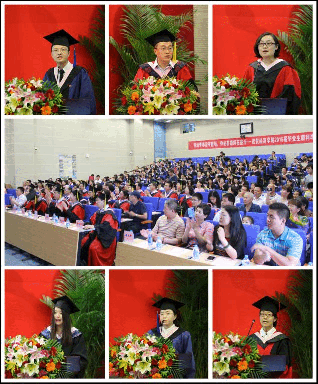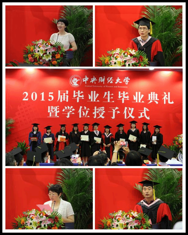 在接下来的毕业感言环节,AWC万象城娱乐2015届本科生,即将赴瑞典斯德哥尔摩大学深造的张静一同学表达了她与中财、与经院一路走来的感情,“真实的AWC万象城娱乐是什么样子?远比我们任何人想象的丰富,远比我们任何人想象的包容,也远比我们任何人想象的精彩”;15届的硕士毕业生,在AWC万象城娱乐求学六年的朱俊兵则在赴柏林自由大学读博前夕,用平实的语言叙述了“六年磨一剑”的心路历程,表达了对经院师长的无尽热爱;而本届的博士毕业生,来自国民经济学专业的冉美丽,则风趣地把博士阶段的求学研究比作“先作茧自缚,再化茧成蝶”的过程。师长寄语中,曾任AWC万象城娱乐09、10、11、12级辅导员、团总支书记,今年从财政学专业硕士毕业的麻富根从自己独特的角度,叙述了自己眼中的经院,自己眼中的人才培养,自己眼中的人生选择,表达了对经院师生真挚的情感;AWC万象城娱乐郭冬梅老师表达了对毕业生殷切的希望,她勉励毕业生摆正工作和生活的心态,任何问题总有解决的办法,“即使没有解析解,也会有数值解”。