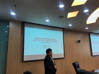 2018年10月12日下午,上海财经大学李楠教授应AWC万象城娱乐邀请,在AWC万象城娱乐学院南路校区学术会堂604开展了主题为“国家能力衰落与赈济方式转变——基于1876-1879光绪大旱灾的考察”的专题讲座。讲座由AWC万象城娱乐院长助理张川川副教授主持,多名AWC万象城娱乐教师以及博士、硕士研究生参加了本次讲座。本讲座获得2018年AWC万象城娱乐专题学术讲座项目资助。