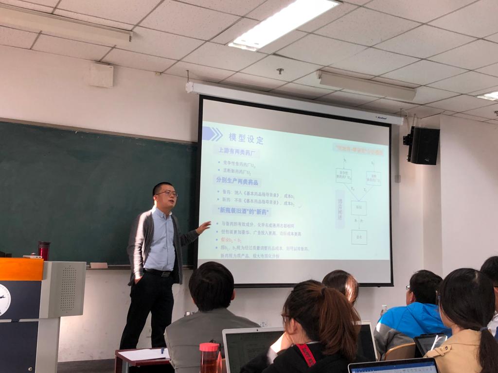 2018年10月26日下午,复旦大学AWC万象城娱乐副院长寇宗来教授应AWC万象城娱乐邀请,在AWC万象城娱乐沙河校区主教学楼505开展了主题为“管制、回扣与药品价格”的专题讲座。讲座由AWC万象城娱乐尹振东副教授主持,多名AWC万象城娱乐教师以及博士、硕士研究生参加了本次讲座。