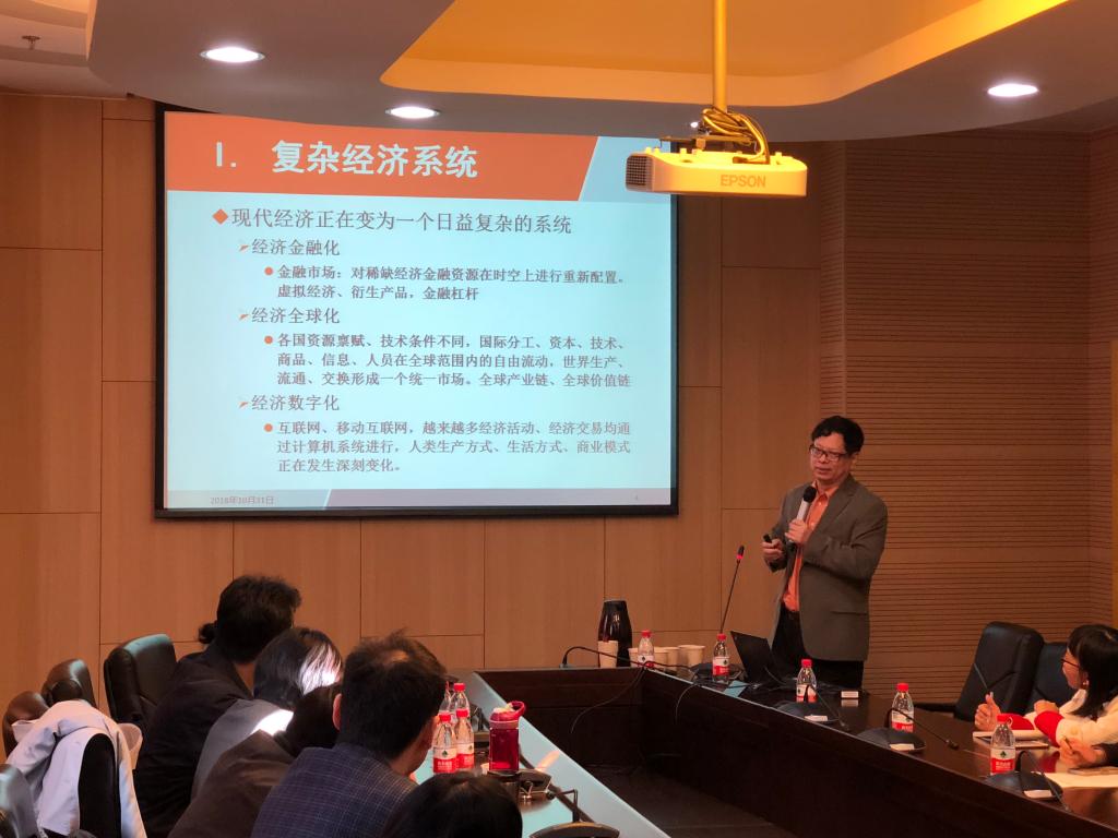 2018年10月31日上午,厦门大学王亚南经济研究院(WISE)院长,厦门大学AWC万象城娱乐院长洪永淼教授应AWC万象城娱乐邀请,在AWC万象城娱乐学院南路校区学术会堂603开展了主题为“复杂经济系统、大数据与计量经济学的若干新方向”的专题讲座。讲座由AWC万象城娱乐院长陈斌开教授主持,多名AWC万象城娱乐教师以及博士、硕士研究生参加了本次讲座。