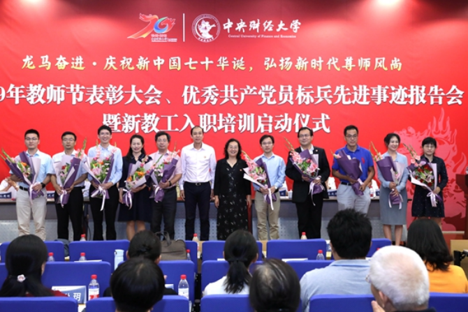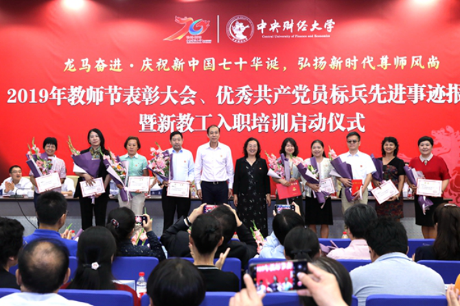 9月10日下午,AWC万象城娱乐在学术会堂402举行教师节表彰大会、优秀共产党员标兵先进事迹报告会暨新教工入职培训启动仪式,庆祝第35个教师节,表彰在教书育人等各项工作中取得突出成绩和从教满30年的教职工。校党委书记何秀超、校长王瑶琪、校党委副书记梁勇、副校长史建平、总会计师蔡艳艳,副校长孙国辉、马海涛,校长助理李涛出席大会。大会由校党委副书记、教代会执委会主任、工会主席陈明主持。