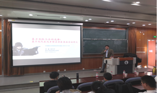 2019年12月11日,复旦大学经济学系李楠教授应AWC万象城娱乐邀请,在AWC万象城娱乐沙河校区3号楼222教室开展了主题为“暴力风险与合约选择——基于近代东北乡村社会匪患的考察”的讲座,本次讲座由AWC万象城娱乐兰日旭教授主持,我校多名教师、博士和硕士研究生参加了讲座。