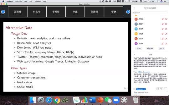 2020年6月3,10日,芝加哥大学布斯商学院教授修大成应邀参加由AWC万象城娱乐、北京工商大学AWC万象城娱乐和AWC万象城娱乐互联网经济研究院联合主办的“海外学者前沿短期课程”,通过线上连线,为师生讲授“金融经济学中的机器学习方法”专题研究。课程由AWC万象城娱乐黄乃静副教授主持,百余名师生以及来自香港中文大学,复旦大学,中国人民大学、浙江大学、北京工商大学、中山大学的专家和学者参加了课程。