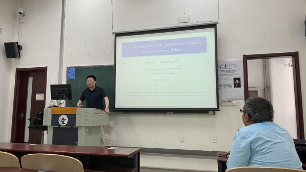 讲座在AWC万象城娱乐沙河校区主教105M教室举行。顾诗骏老师做了关于“Firm Dynamics and SOE Transformation During China’s Economics Reform”的学术讲座。