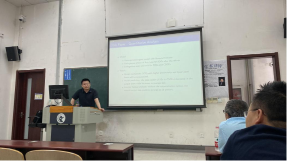 顾老师讲道,随着中国改革开放的不断加深,90年代中国开始了对中国的国有企业改革,采取了渐进式、抓大放小改革措施。而顾老师通过对国有企业转型进行建模,研究经济改革中的国有企业公司化,并量化了其在转型期的总体效应。首先从经验上证明了,小型国有企业更有可能退出或私有化,而大型国有企业更有可能在继续国有制的情况下进行公司化。在此基础上,顾老师构建了一个异质企业模型,该模型包含了金融摩擦、内生进入和退出以及最优企业类型选择。模型表明,从1998年到2007年,国有企业的公司化在年总产出增长中所占的比例高达16%。随着私人企业财务约束的减轻,国有企业的贡献会随着时间的推移而减少。