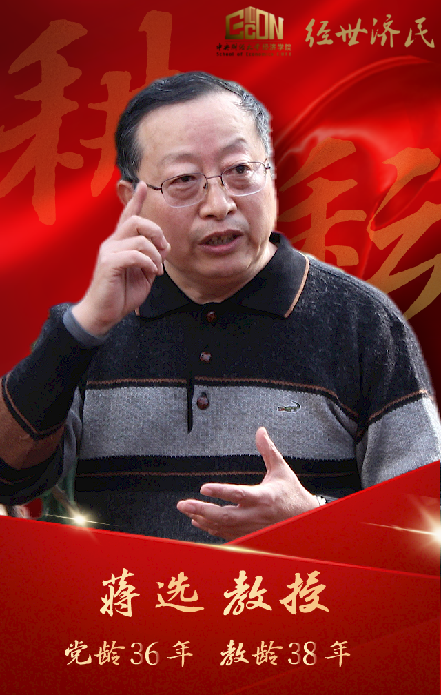 三十余载,潜心育人,圆莘莘学子求知梦。突破进取,争做中财大新路开拓者;弦歌不辍,愿为中财大师生好榜样。在文化多元时代,志存高远、勤恳做事、踏实为人,坚定引领中财人;在奋进新时代,温文尔雅、爱岗敬业、严谨求真,永远感动中财人!