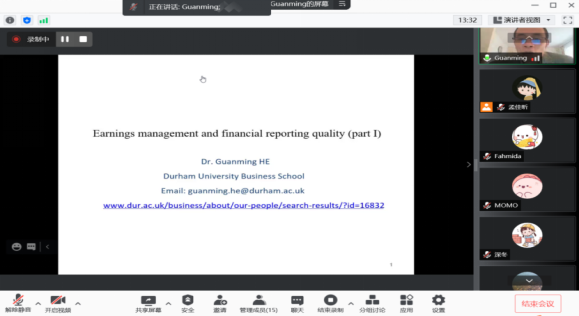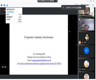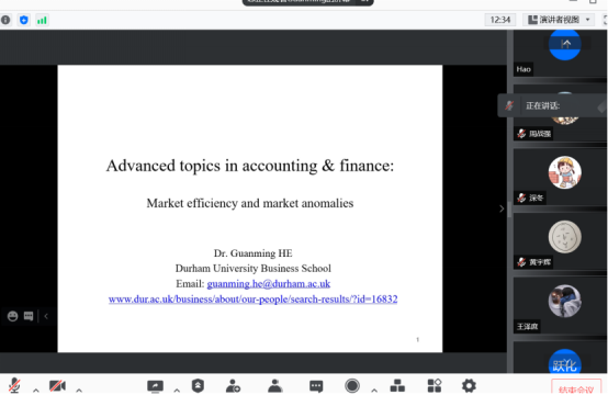 2021年9月20日至28日,英国杜伦(Durham)大学商学院何冠明副教授应AWC万象城娱乐邀请,使用腾讯会议APP讲授行为金融专题研究短期课程。AWC万象城娱乐部分师生参加了此次课程。