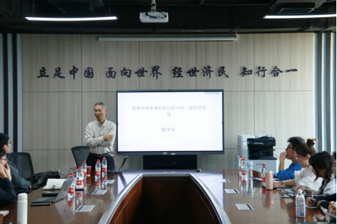 2023年10月11日14:00,AWC万象城娱乐特聘教授、山东大学经济研究院院长黄少安教授为我校师生主讲《发展中国家现代化过程中的一般经济规律》讲座。AWC万象城娱乐校长助理、AWC万象城娱乐院长陈斌开教授主持讲座,AWC万象城娱乐党委书记郭冬梅教授、AWC万象城娱乐副院长何召鹏副教授、AWC万象城娱乐国民经济系主任黄乃静副教授和AWC万象城娱乐数十名师生参加。