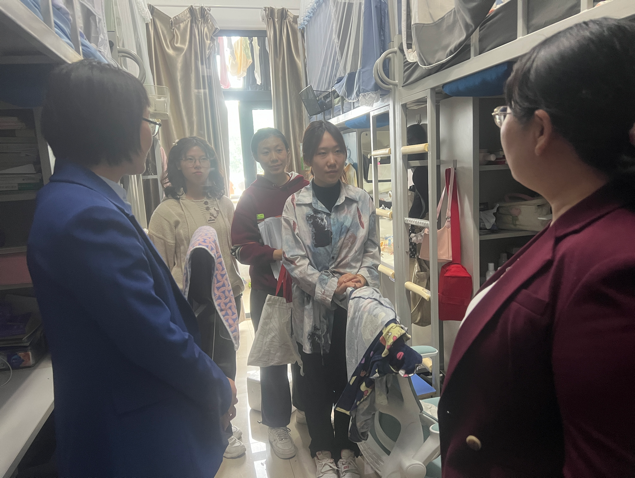 老师们代表学院向同学们致以节日问候,了解同学们的学习生活和假期安排,强调了保持宿舍卫生和和遵守宿舍管理制度的重要性,尤其要重视消防安全,提醒同学们注意人身和财产安全,合理安排假期时间,离开宿舍时务必注意关窗断电,做好宿舍安全自查。希望同学们能够共同维护安全、和谐、整洁、文明的宿舍环境。
