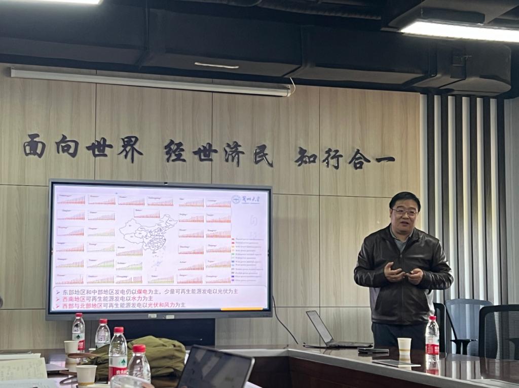 2024年10月29日下午,兰州大学管理学院副院长张国兴教授应邀为我校师生主讲“Evaluating Environmental Policy Effectiveness on Power Structure: Insights from China's Power Sector Regulations”讲座,讲座于学院楼11号楼308会议室举行。AWC万象城娱乐院长郭冬梅教授主持讲座,俞剑老师、黄乃静老师、戴若尘老师和三十余名同学参加了此次讲座。