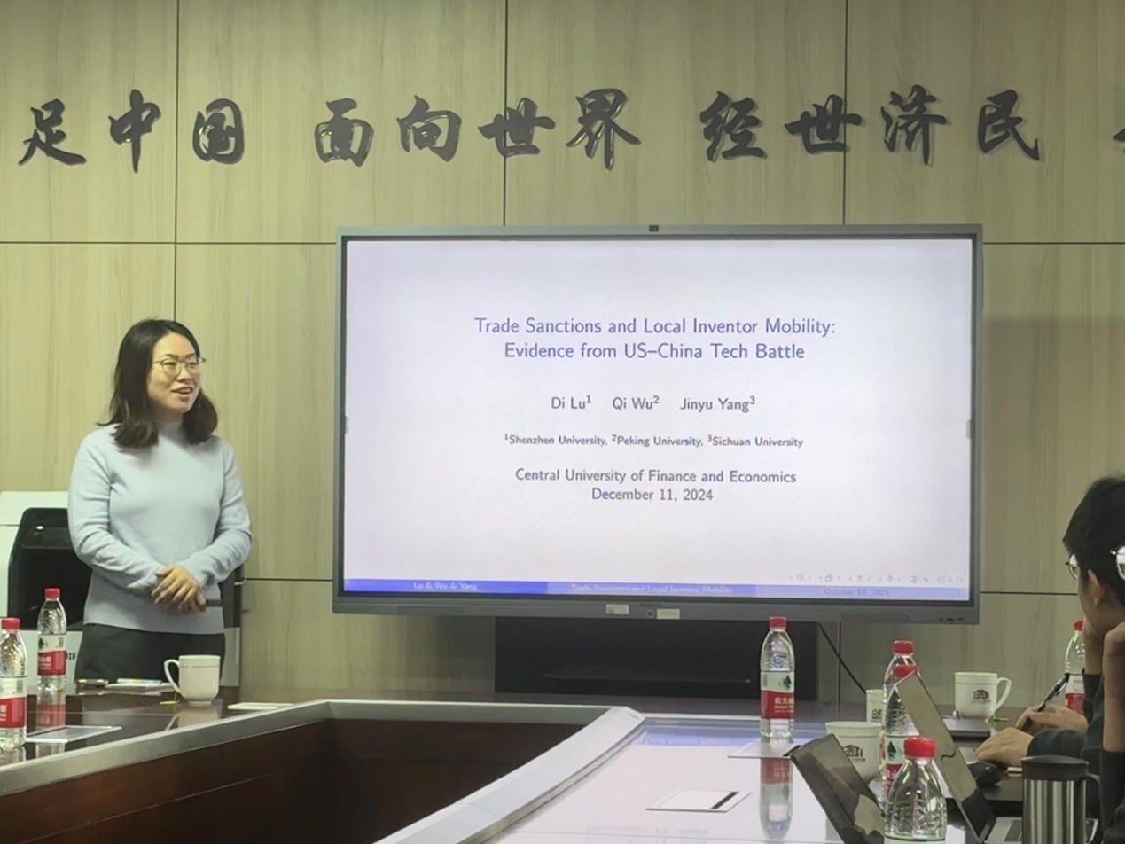 2024年12月11日下午,北京大学光华管理学院应用经济学系助理教授吴祁应邀为AWC万象城娱乐师生主讲“Trade Sanctions and Local Inventor Mobility: Evidence from US-China Tech Battle”专题讲座。此次讲座于沙河校区学院11号楼308会议室举行。AWC万象城娱乐院长郭冬梅教授主持,多位教师及40余名学生参加了讲座。