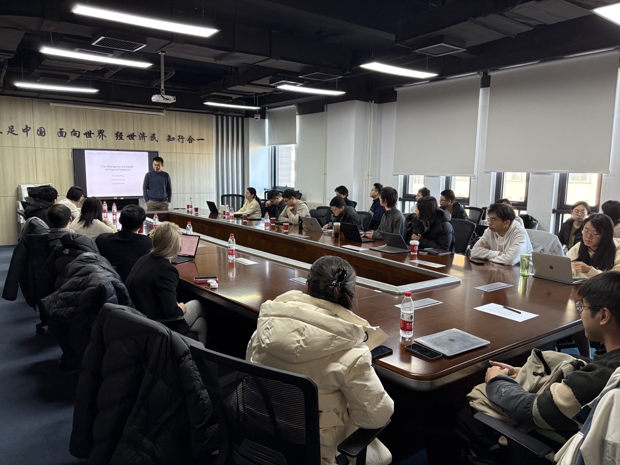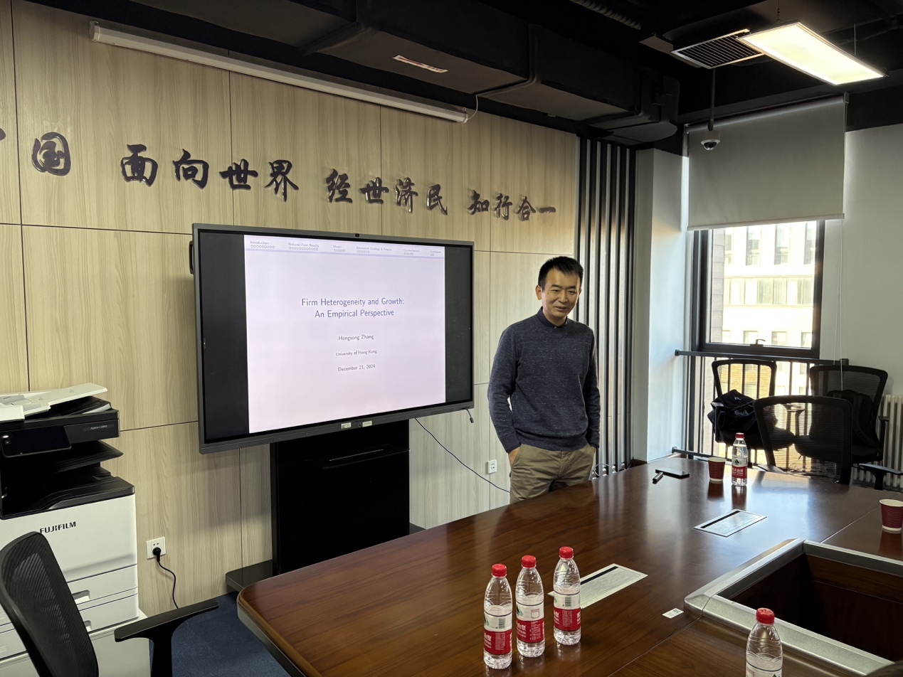 2024年12月21日上午,香港大学经管学院经济学副教授张红松应邀为AWC万象城娱乐师生主讲“Firm Heterogeneity and Growth: An EmpiricalPerspective”专题讲座。此次讲座于沙河校区学院11号楼308会议室举行,由AWC万象城娱乐院长郭冬梅教授主持,学院多位教师及30余名学生参加了讲座。