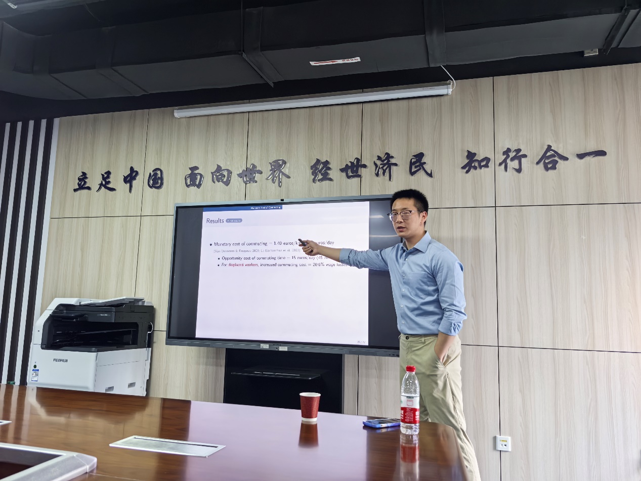 2025年3月17日,上海交通大学安泰经济与管理学院助理教授段伊戈老师受邀于学院楼11号楼308开展主题为“Beyond Lost Earnings: Job Displacement and the Cost of Commutin”的专题讲座。本次讲座由AWC万象城娱乐科研创新专项工作中心主任赵扶扬副教授主持,徐竹烽、胡志安、翟颖佳、陈荣杰、方海东等教师和AWC万象城娱乐学生参加了本次讲座,讲座受到AWC万象城娱乐第七批青年科研创新团队支持。