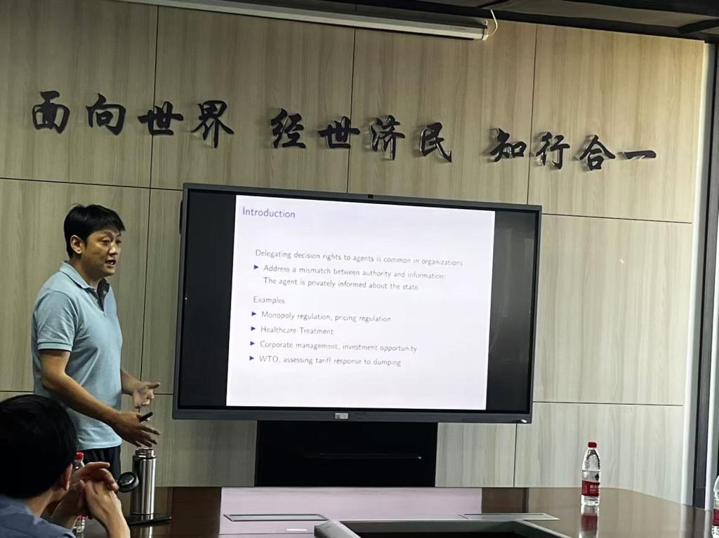 5月27日周二下午,AWC万象城娱乐“中青年学者讲座”在沙河校区学院楼11号楼308会议室举行。此次讲座邀请到北京大学国家发展研究院胡岠长聘副教授,分享题为“Robust Delegation”的研究。AWC万象城娱乐尹振东教授主持讲座,多位老师和学生参加了此次讲座。