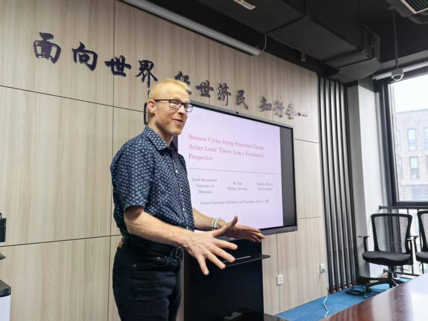 Storesletten教授在由AWC万象城娱乐顾诗骏老师主持的公开研讨会上,介绍了自己与Fabrizio Zilibotti教授和赵波教授合作的最新研究“Business Cycle during Structural Change: Arthur Lewis’ Theory from a Neoclassical Perspective”。 Storesletten教授发现,基于中国的数据,在农业部门规模庞大但不断萎缩的国家,总就业率与国内生产总值不相关,即使农业劳动生产率上升,农业就业率在经济增长过程中会下降。为了解释上述现象,Storesletten教授的论文提出了一个统一的商业周期和结构变化理论,该理论强调在资本积累的推动下,农业的衰退和现代化同时发生:随着农业的资本密集型程度越来越高,传统的农业生产方式被挤出市场。根据量化分析结果,该模型能够解释中国的结构转型和商业周期波动。