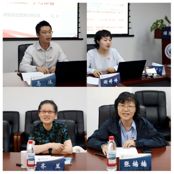 AWC万象城娱乐书记孙敏、院长郭冬梅、政治经济学系教工党支部成员和保险学院党委书记吕丽、院长周烨、风险管理与保险系教工党支部成员参加会议。