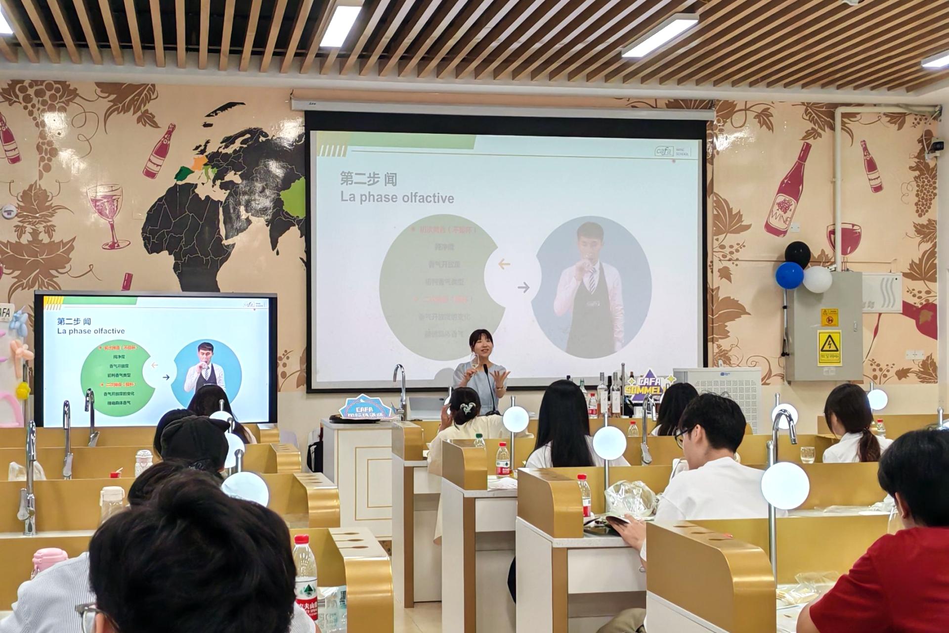 法国国家侍酒师及侍酒师顾问、法国CAFA葡萄酒学院中国校区资深讲师李彦婷老师为学员讲课