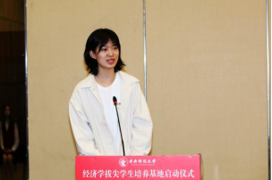 学生代表朱可桐同学提到,在大学学习中,她从老师的教学授课中感受到了经世济民的情怀,同时又被高深的经济学理论所吸引,更为错综复杂的现实和经济现象而困惑。在老师的指引和带领下她加入了基地班,未来将继续坚持勤奋扎实、攻坚克难的学风,不辜负基地班的培养。