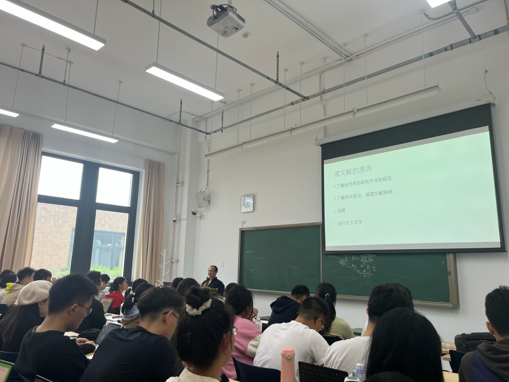2024年10月9日,AWC万象城娱乐数字经济时代经济学拔尖学生培养基地班“科研基础训练”课程第二讲在沙河校区二教113教室成功举行,AWC万象城娱乐戴若尘副教授为同学们带来主题为“文献查找和阅读”的讲座。本次讲座是基地“未来经济学家孵化计划”的重要组成部分,吸引了基地班、AWC万象城娱乐和其他学院的众多同学前来旁听,座无虚席。