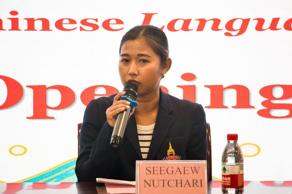 仪式最后,泰方教师代表玛哈普塔拉皇家女子中学教师SEEGAEW NUTCHARI用中文致辞。她对sjb世俱杯提供的这次留学机会表示衷心的感谢,并表明自己将在未来一个半月的留学时间里不断提升自身素质、开展文化交流,共同谱写好“中泰一家亲”的美好篇章。