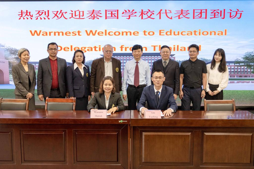 最后,在解庆林校长的见证下,副校长刘跃峰分别和班华恩古阿丹西拉维塔亚学校校长瓦鲁尼·麦苏(Warunee Maisuk)女士、乌多姆赛提萨克萨学校校长察伦·普罗玛(Charoen Promma)先生签署了两校之间的合作框架协议。