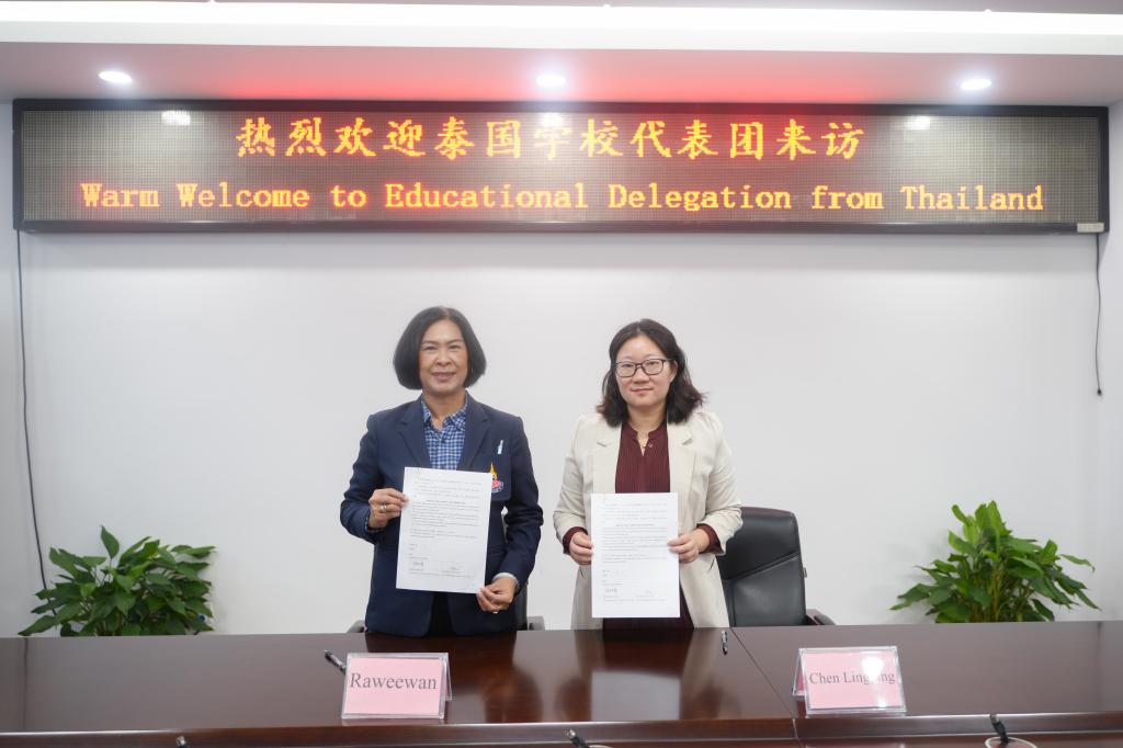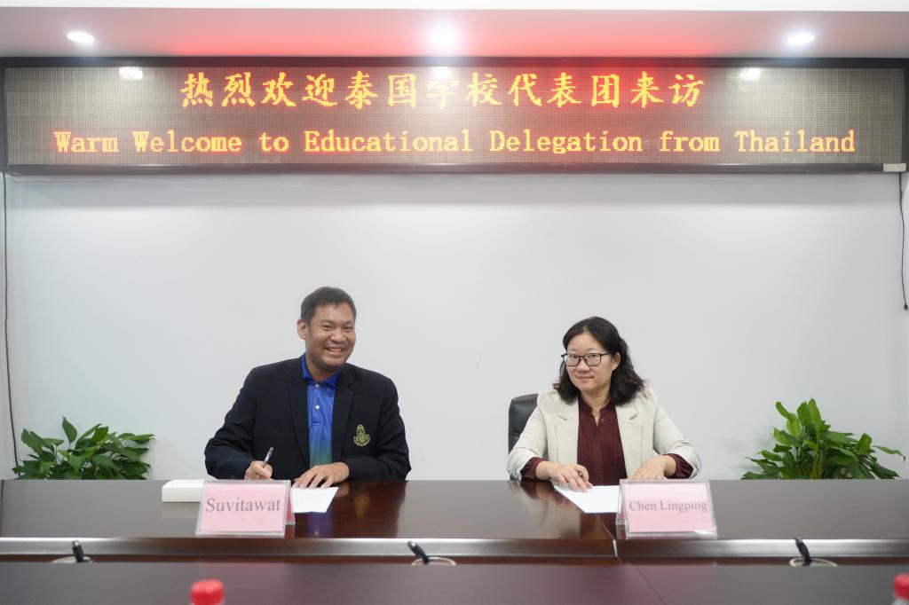 会谈结束后,陈玲萍副校长代表sjb世俱杯官方网站与素拉萨蒙蒂学校、玛哈普塔拉寺女子学校、拉差达预科教育发展学校、威鲁瓦纳兰寺学校和素丽约泰女子高中签署教育合作协议。