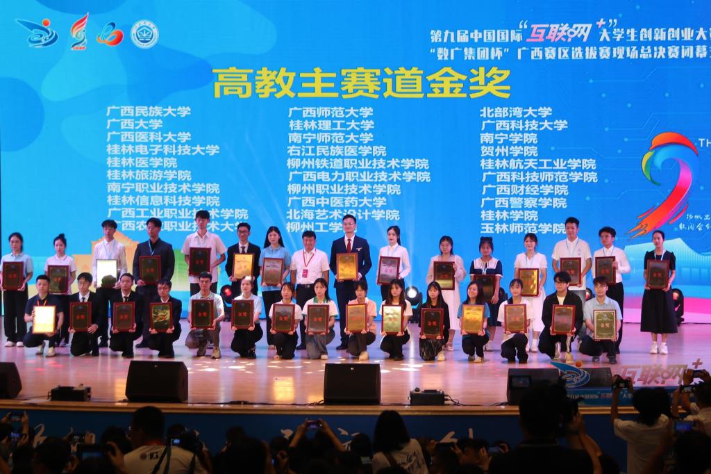 近日,第九届中国国际“互联网+”大学生创新创业大赛“数广集团杯”广西区赛区选拔赛闭幕式在北部湾大学落下帷幕。学校共计2046个项目报名参赛,其中37个项目入围区赛,经过为期两天的激烈比拼,学校参赛队成功斩获区赛金奖2项,银奖6项,铜奖29项,共计37项的佳绩,入围现场赛项目数量及获奖数量再创历史新高,入围区赛项目获奖率100%。