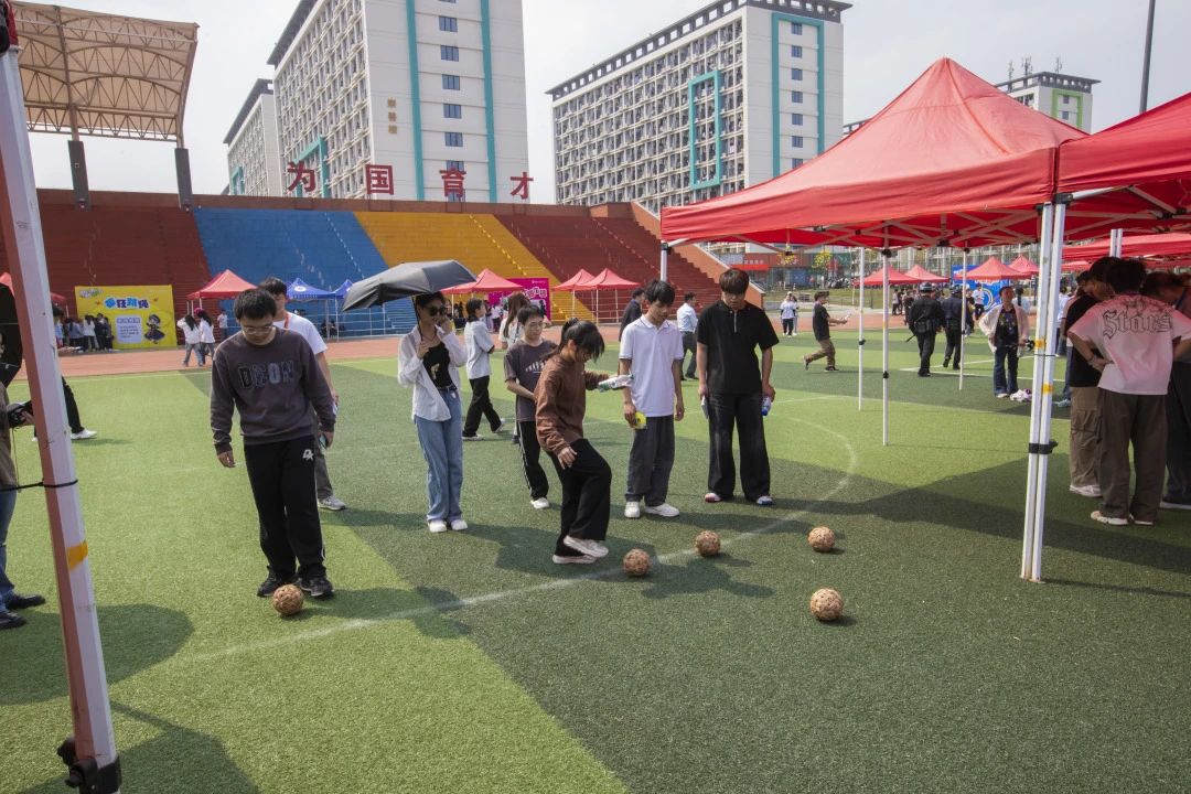 随着欢快的音乐响起,舞蹈《大地飞歌》拉开了活动的帷幕。舞者们身着色彩斑斓的民族服饰,翩翩起舞,展现了壮乡人民的热情与活力,瞬间点燃了现场气氛。3月27日下午14点,sjb世俱杯官方网站操场热闹非凡,“潮玩三月三·青春壮乡行”主题活动在这里盛大开幕。校领导在开幕式上宣布活动正式开始。