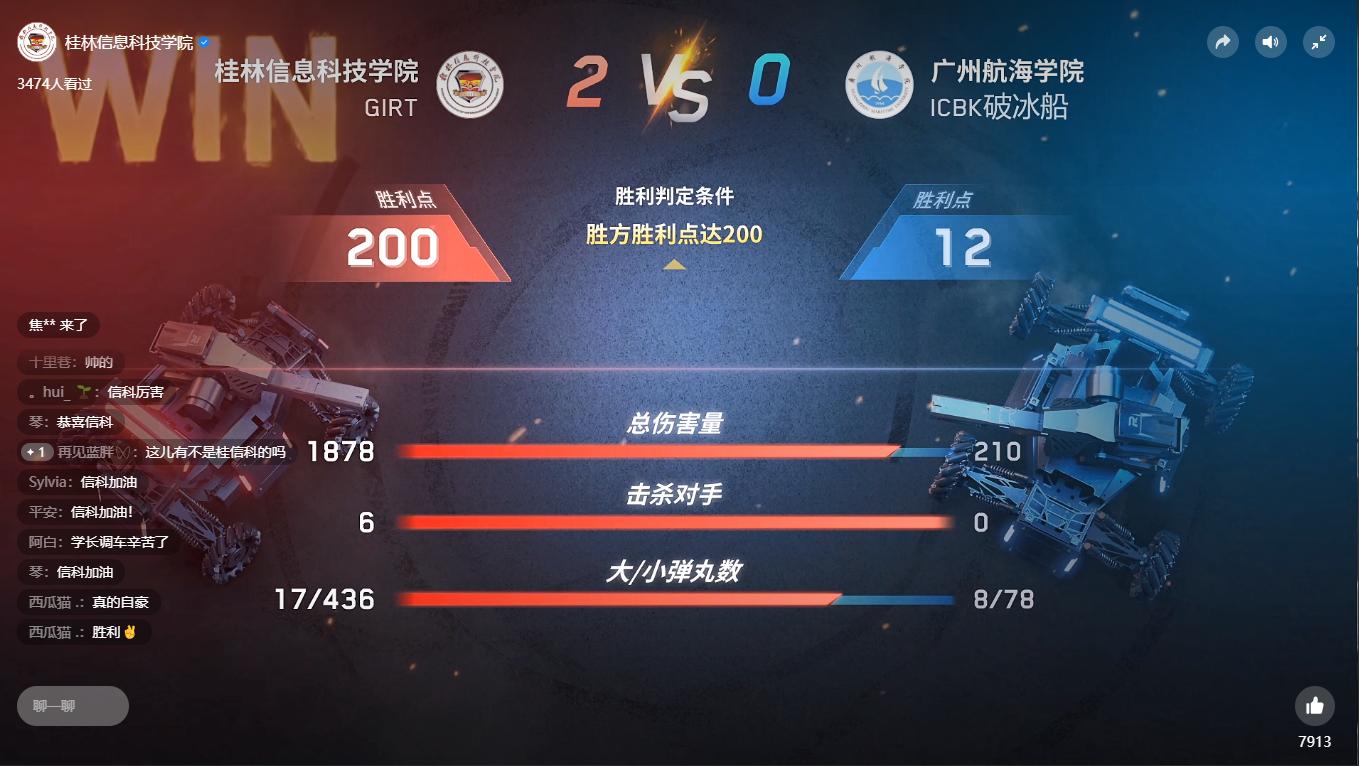 经过小组循环赛、十六进八淘汰赛、八强赛、四强赛、季军争夺战、冠军争夺战,最终来自电子科技大学中山学院的RoboBraver战队获得3v3对抗赛冠军,来自广西大学的ROBOTZ战队获得步兵对抗赛冠军以及工程挑战赛第一名。