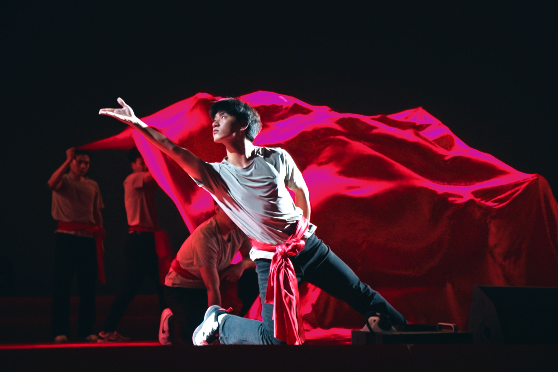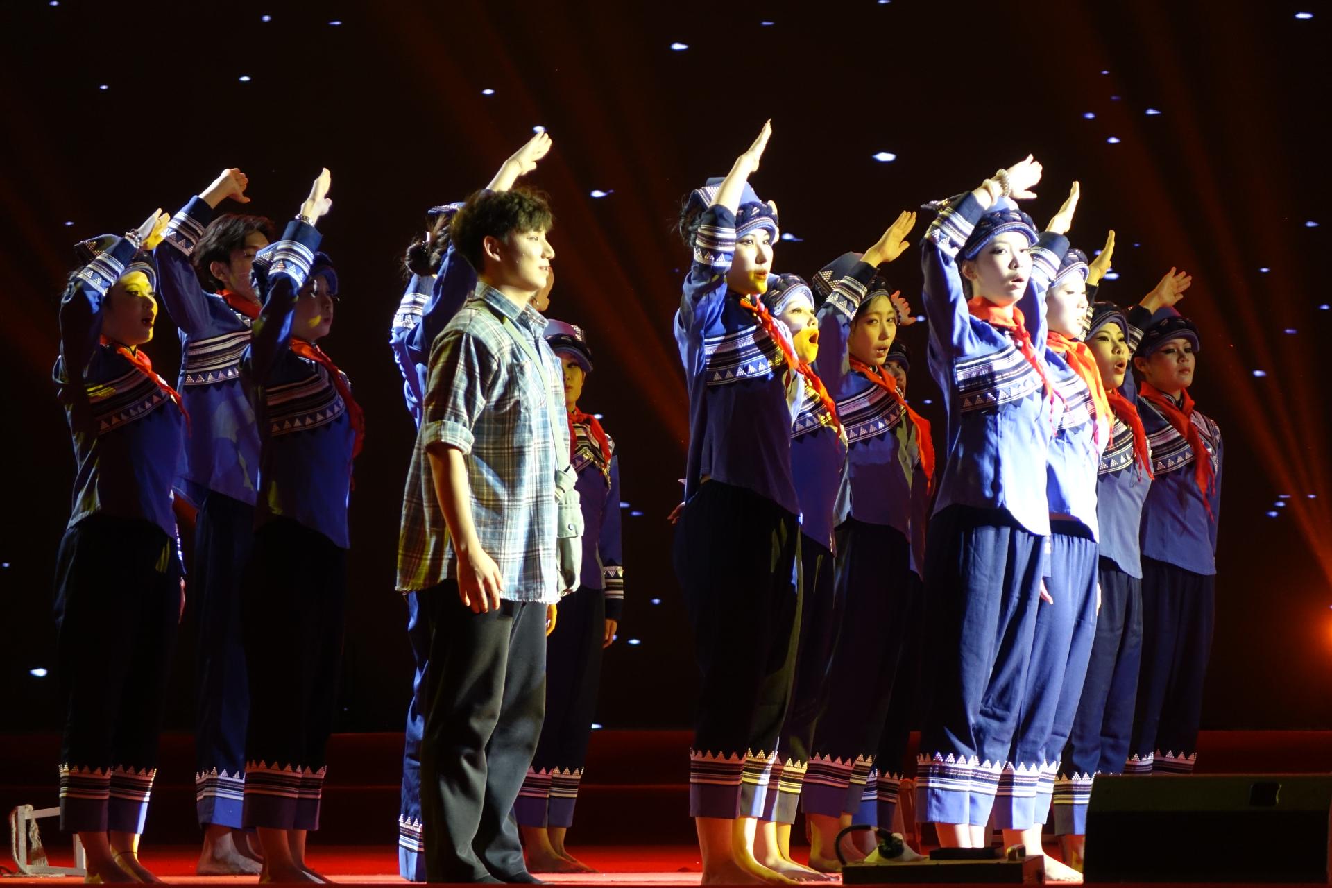第三篇章“继伟业,浩气长存铸精魂”,以中国精神为核心,深刻体现其历史传承与当代发展。创意设计学院《红旗漫卷・六盘豪情》拉开篇章序幕,随后商学院《百万旌旗卷红江》、机电工程学院《俑生俑事》、电子工程学院《一川星斗流沧海》、体育与健康学院《青春问答》以及信息工程学院《您的模样》依次登场。这些作品聚焦中国精神这一贯穿古今的核心力量,展现了先辈们筚路蓝缕、奠基立业的奋斗历程,以及中国精神在当代社会的延续与发展。