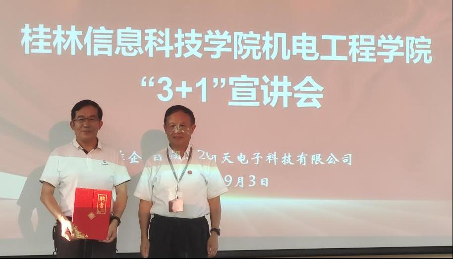 9月3日,临桂高新区政府、机电工程学院与东莞阳天电子科技有限公司齐聚一堂,共同探讨校企 “3+1”人才培养模式,推动产教深度融合与人才培养创新。