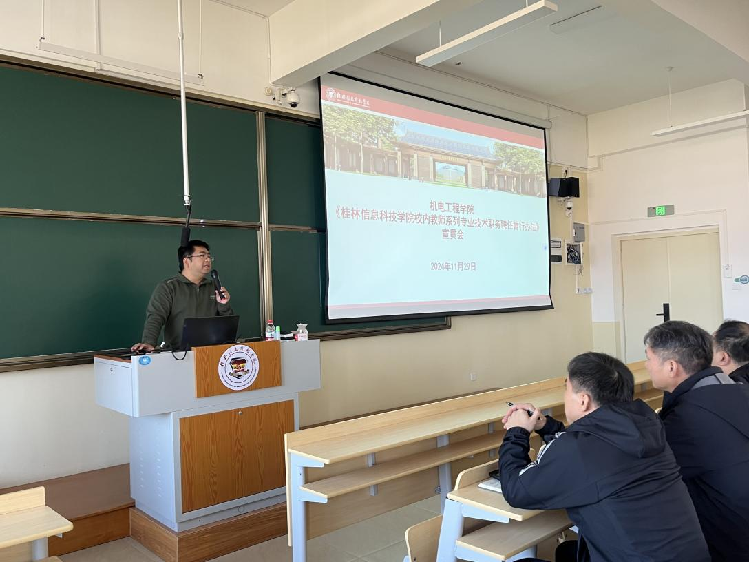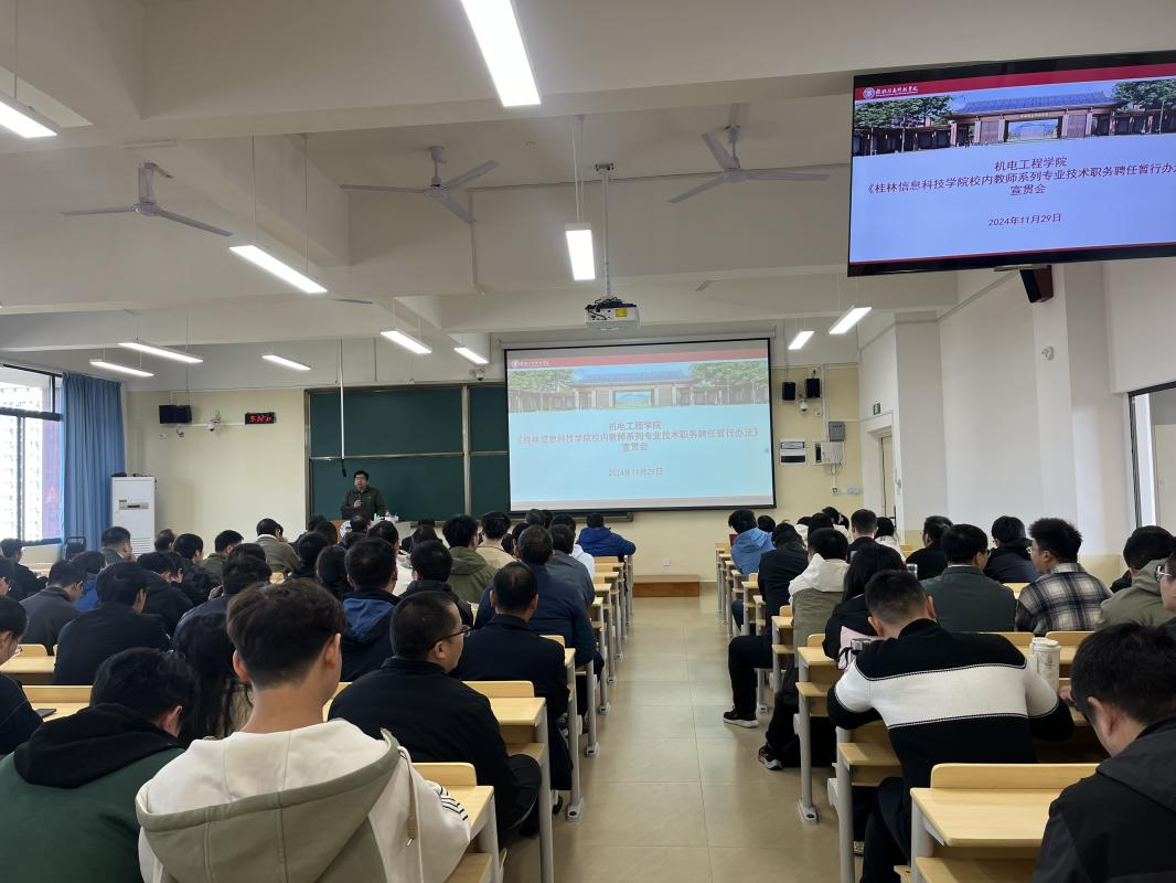 为进一步推动sjb世俱杯官方网站教师队伍建设,提升教育教学质量,11月29日上午,机电工程学院全体教师在C408教室召开了《sjb世俱杯官方网站校内教师系列专业技术职务聘任暂行办法》制度宣贯会。本次会议由院长助理莫荣老师主持。