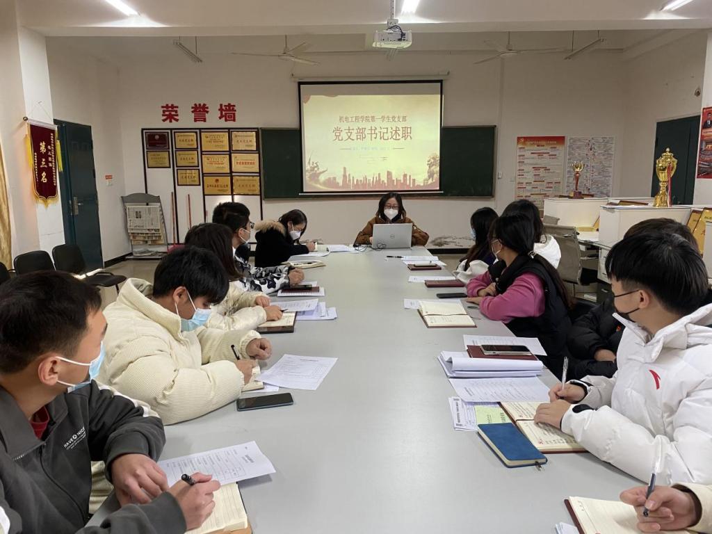 12月14日,机电工程学院学生党支部召开2022年度支部书记述职评议大会,会议由机电工程学院党总支书记黄娟老师主持,全体学生党员参加了大会。