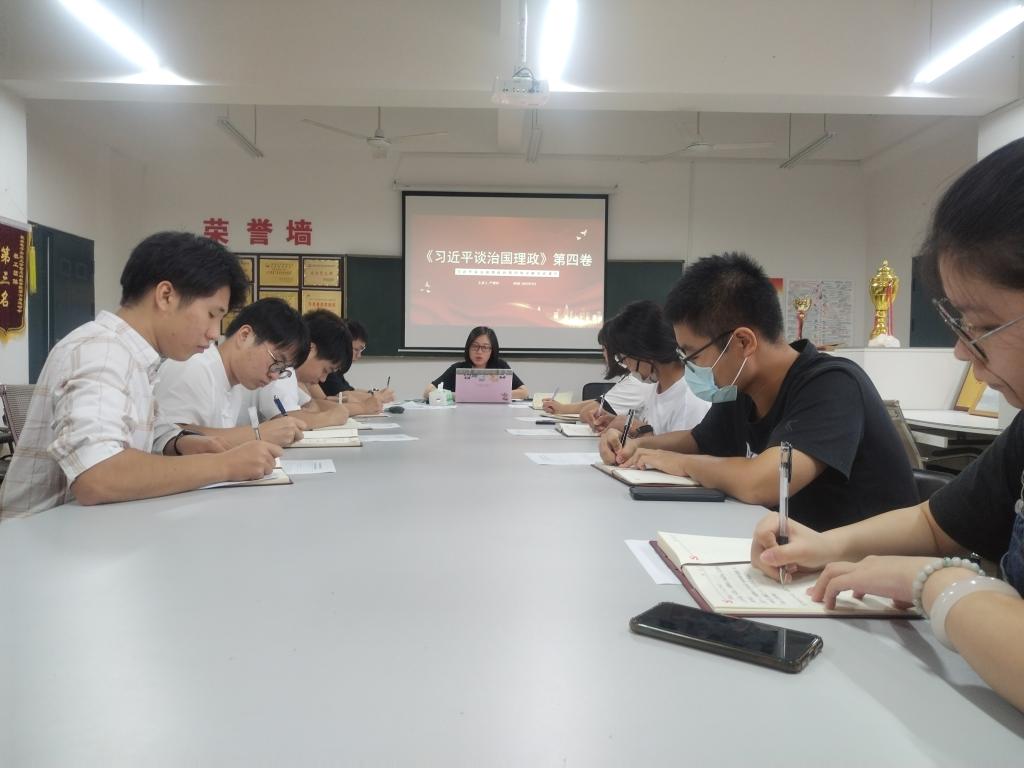 9月21日,机电工程学院第一学生党支部在11311党员活动室召开全体党员会议,组织学习《习近平谈治国理政》第四卷,会议由支部书记严继玲同志主持。