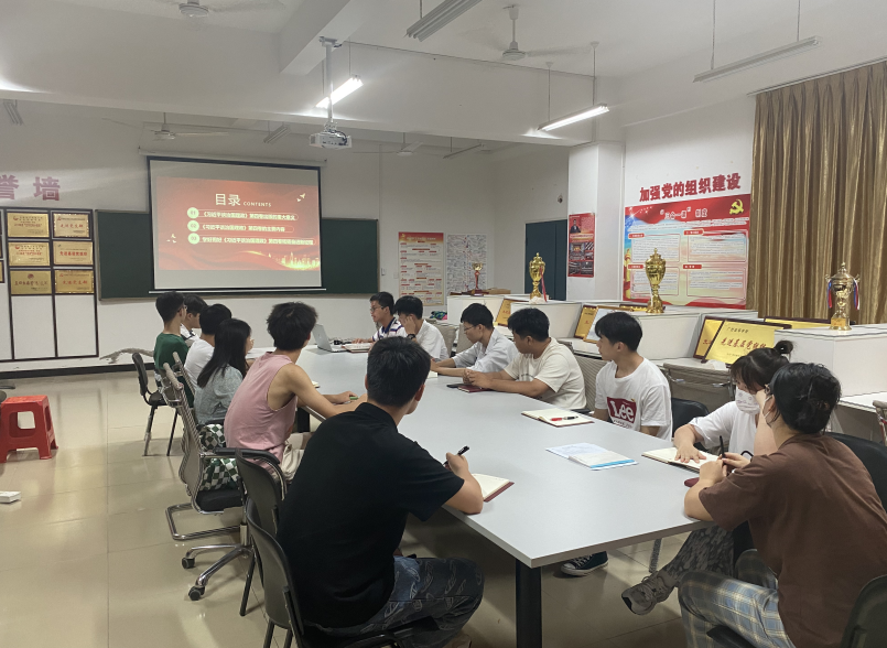 9月15日下午,机电工程学院第二学生党支部在11311党员活动室召开全体党员会议,组织学习《习近平谈治国理政》第四卷,会议由支部书记邓寿任同志主持。