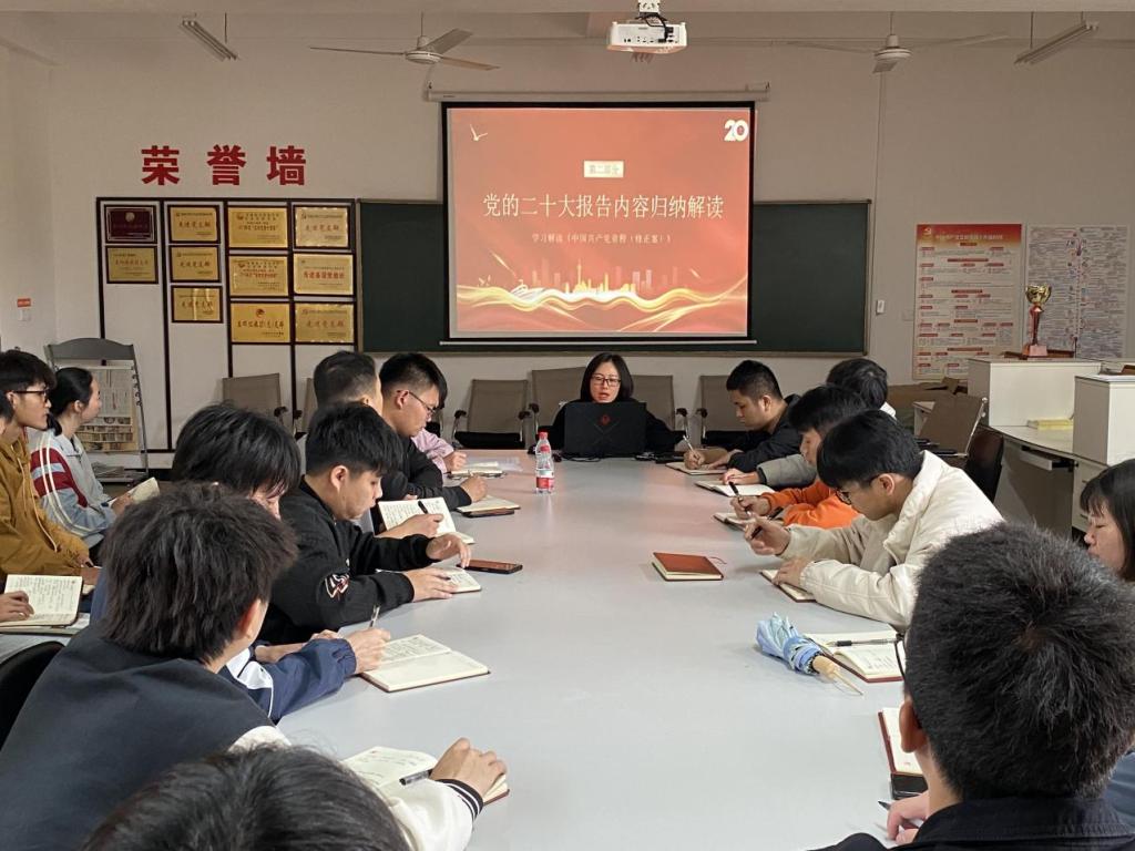 为深入学习宣传贯彻落实党的二十大精神。4月6日,机电工程学院学生党支部深入学习了党的二十大报告,学生支部党员参加了学习会,会议由支部书记严继玲主持。