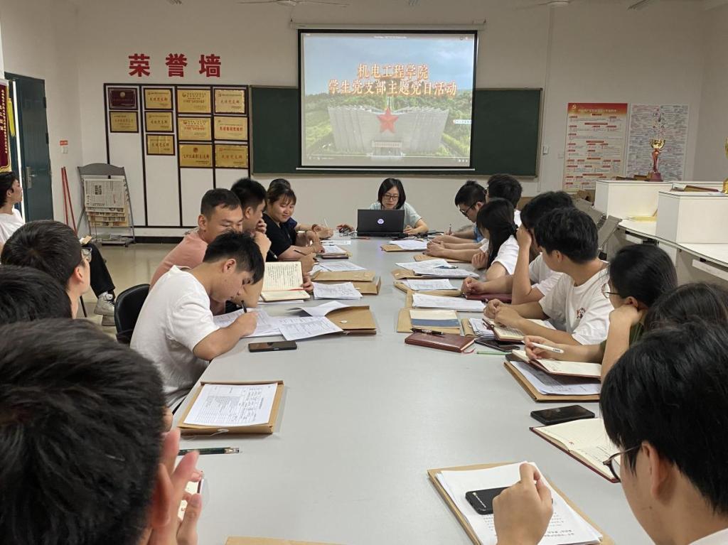 5月6日,机电工程学院学生党支部开展“传承红色基因,汲取奋进力量”红色研学活动分享会,会议由支部书记严继玲老师主持。