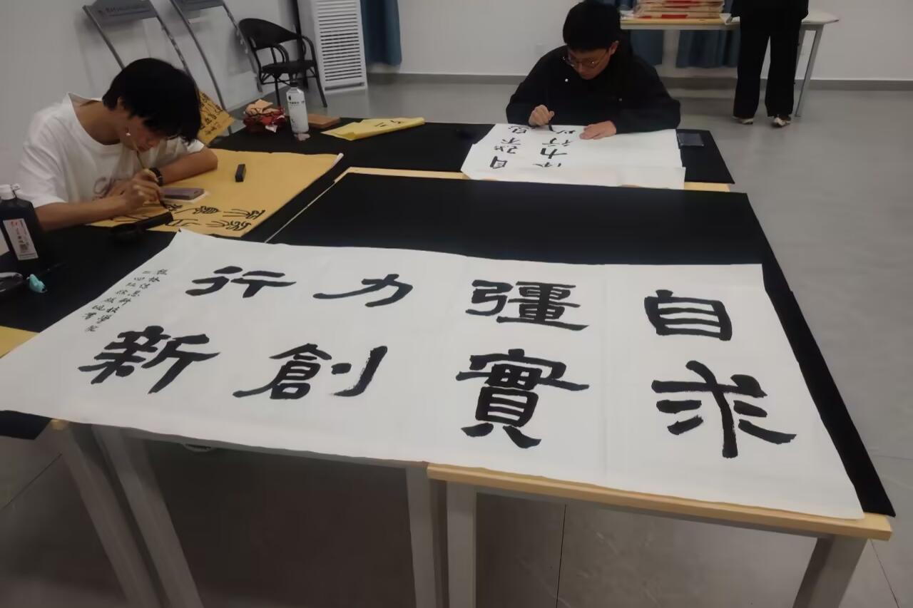 比赛设置了书法(软笔、硬笔)和绘画两个类别,参赛者围绕校训主题进行现场创作。
