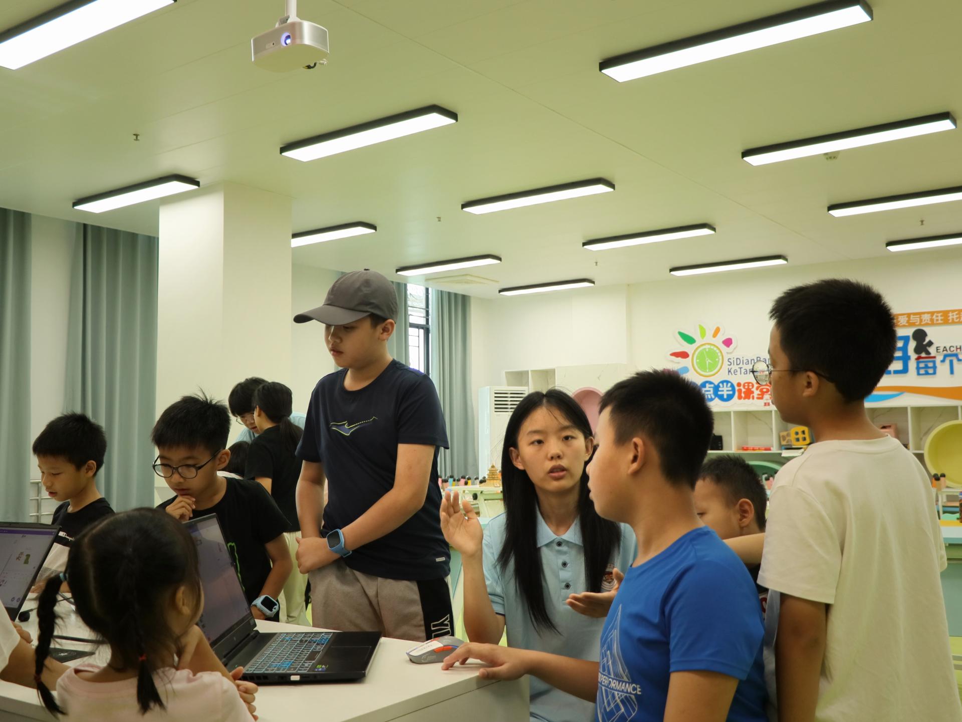 项目成员对小朋友细致解答