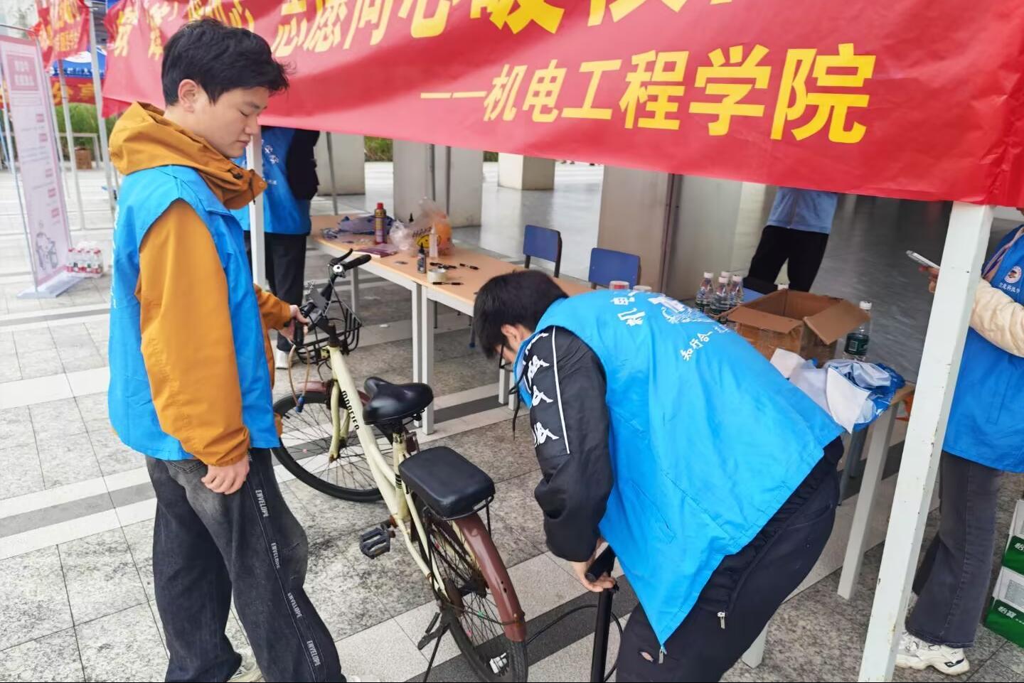为弘扬雷锋精神,践行志愿服务理念,3月17日至18日,机电工程学院在荟萃楼一楼开展“青春筑‘锋’践初心,志愿同心暖校园”自行车免费维修保养志愿活动,由机电工程协会承办,学院青年志愿者代表化身服务先锋,为全校师生送上暖心便民服务。