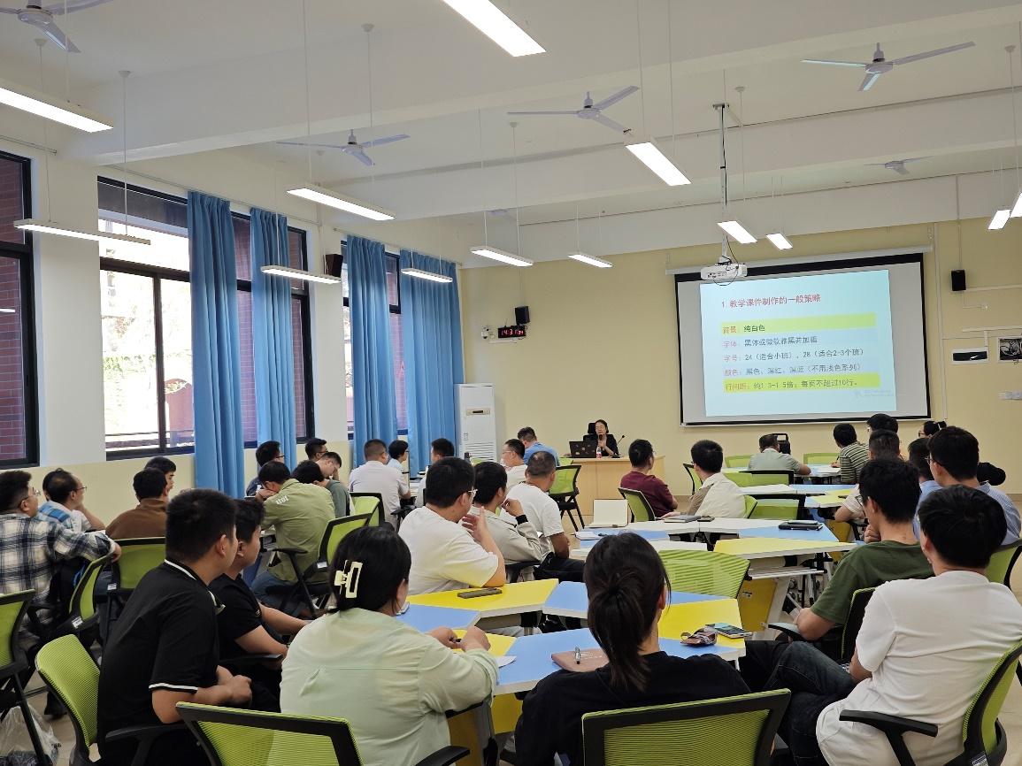 杨婷连副教授首先向在座的各位新入职教师简要概述了力学课程教学的重点和难点,强调了学生学好力学课程的重要意义。并介绍了一个好的PPT制作是什么样的,她指出,一个好的PPT应该是简洁清晰,有助于学生去理解知识点的。比如,让知识点动起来,用动画形式帮助学生理解,以及善用流程图和表格去梳理和总结知识点,都是教师的必须掌握的技能。其次,杨婷连副教授还系统的介绍了上好一节课的注意事项以及建议,从课程导入、课前复习、课堂纪律维护、保持课堂活跃度到最后的布置作业及批改作业,杨婷连副教授都分享了自己的教学方法及其在教学中产生的正反馈。