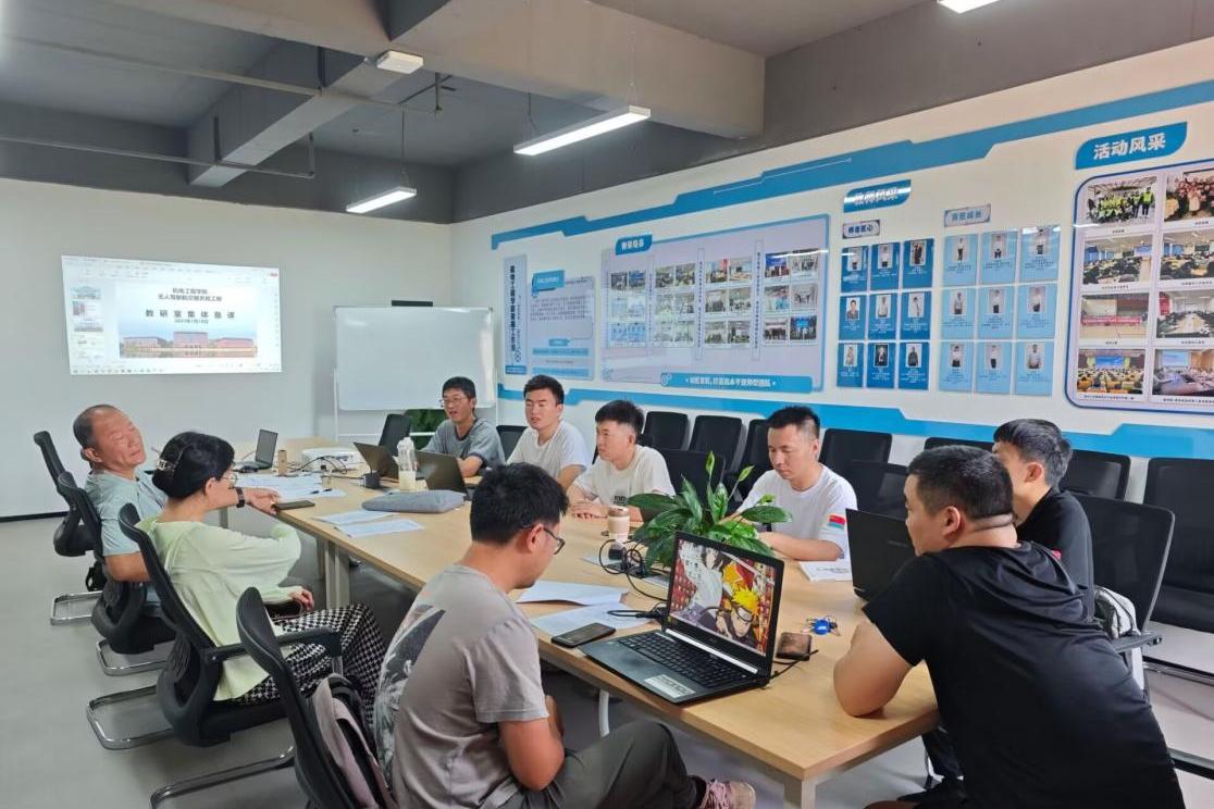 7月18日上午,无人驾驶航空器系统工程教研室全体专任教师在知行楼715开展2025年暑期集体备课活动,本次会议由教研室主任郝卫东老师主持,教研室全体专任教师参与。