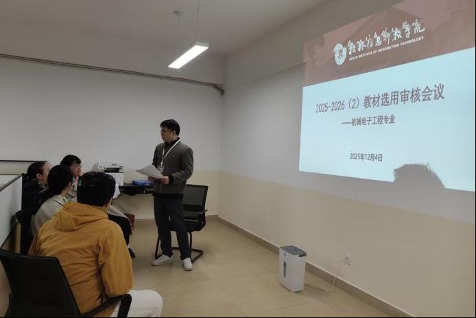 12月4日,机械电子工程教研室组织召开了“2025 - 2026(2)学期教材选用审核会议”。本次会议由教研室主任罗冬华老师主持,罗冬华、廖志平、廖晓梅、韦金秀、游远五位老师共同参与,围绕下学期课程选用教材是否符合学院要求这一核心议题展开深入审查与部署。